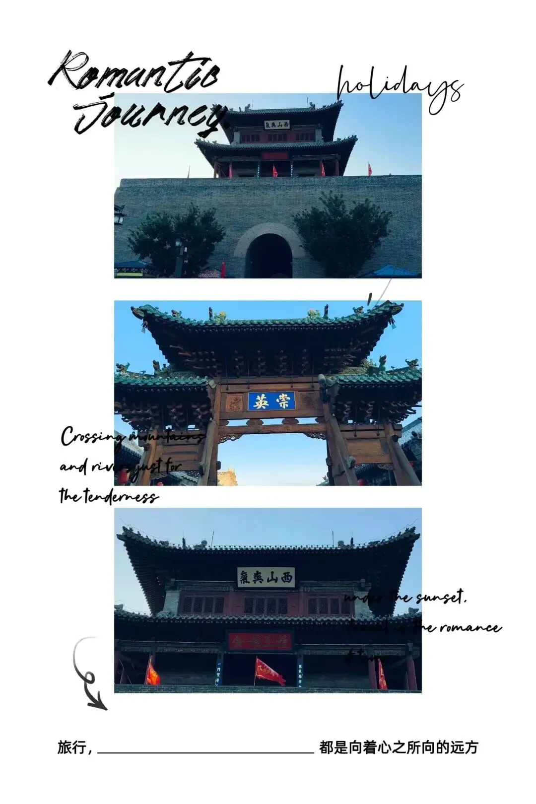 望着夕阳余晖笼罩下的古城,砖瓦都染上了一层暖金色,心中涌起浓浓的不舍与眷恋。