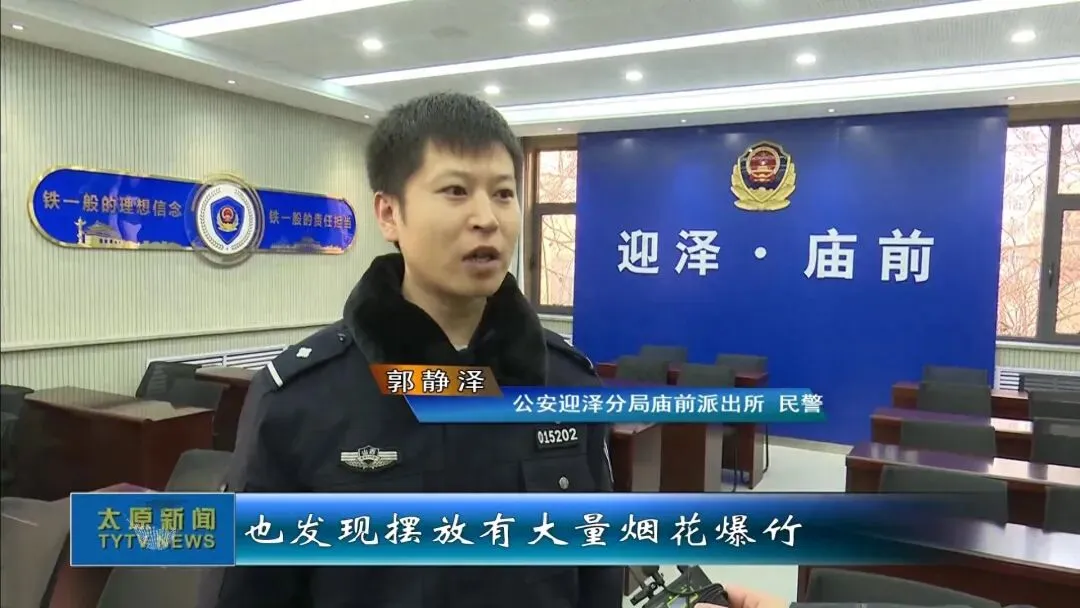 公安迎泽分局庙前派出所 民警 郭静泽:到场后发现客厅摆放有几箱烟花爆竹,随后在次卧内也发现摆放有大量烟花爆竹。