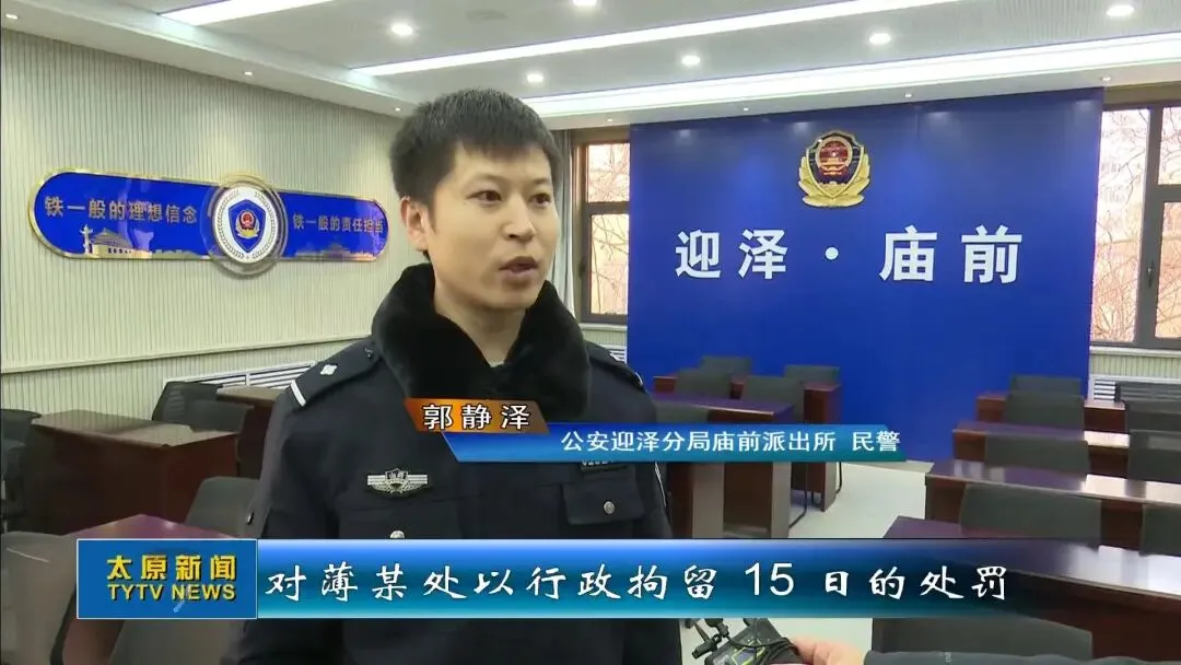 公安迎泽分局庙前派出所 民警 郭静泽:根据《中华人民共和国治安管理处罚法》第三十条 第十一条第一款之规定,对薄某处以行政拘留15日的处罚,烟花爆竹已被江阳化工厂爆破有限公司当场进行收缴。
