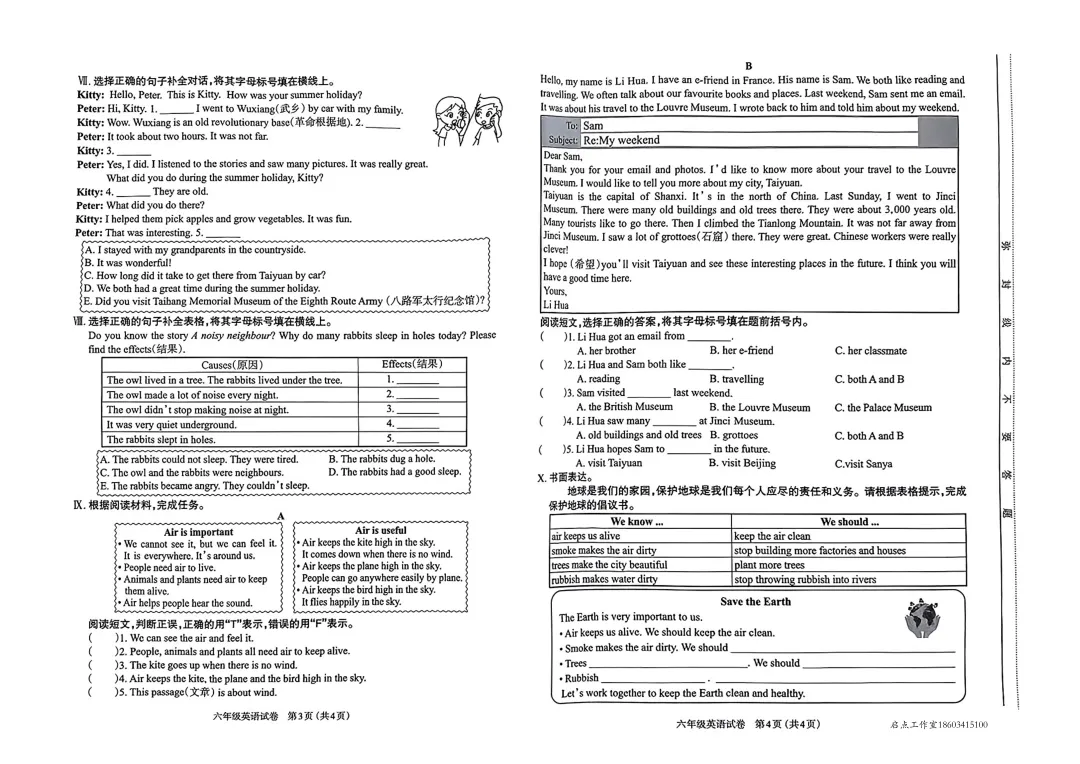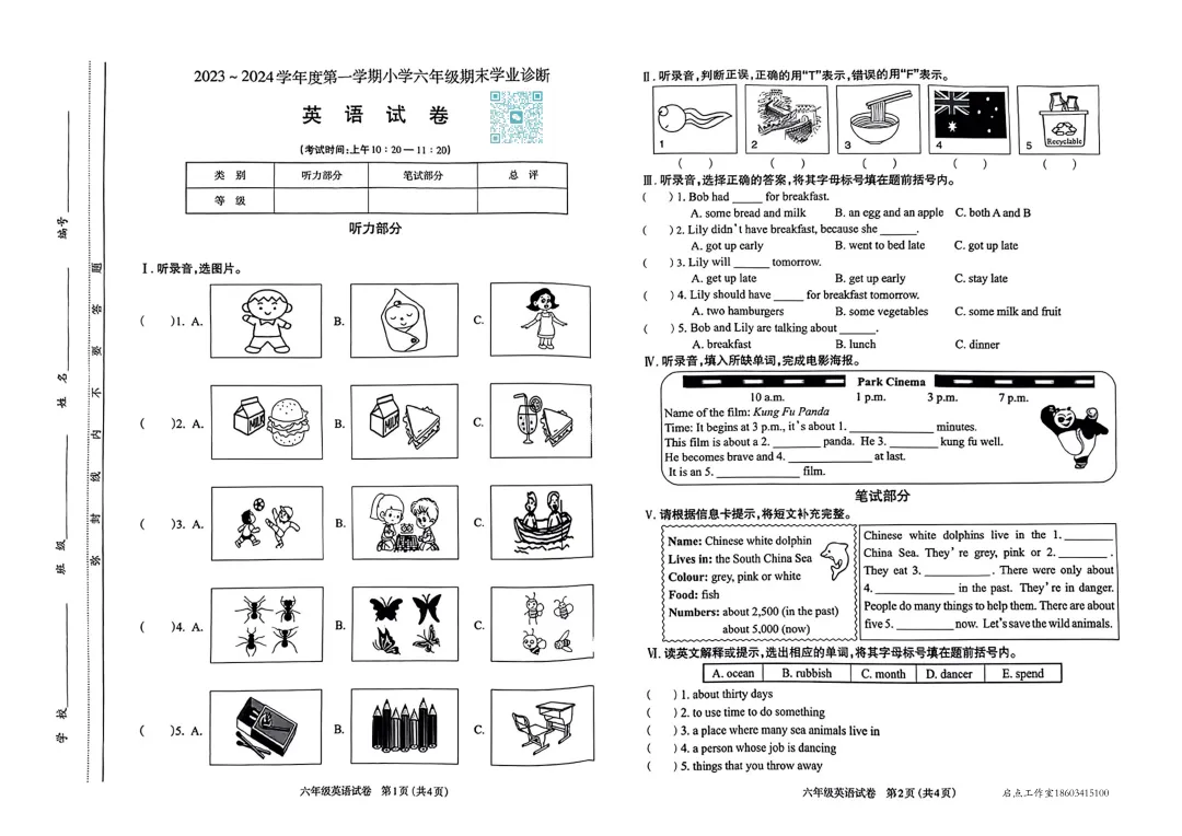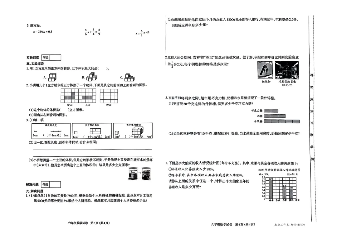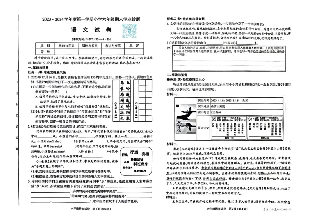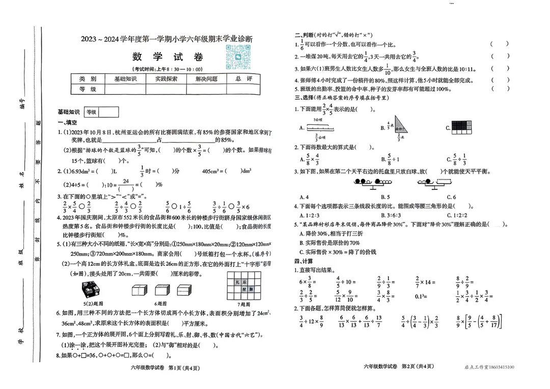 >【六年级期末】太原市2023-2024六年级(上)期末试卷