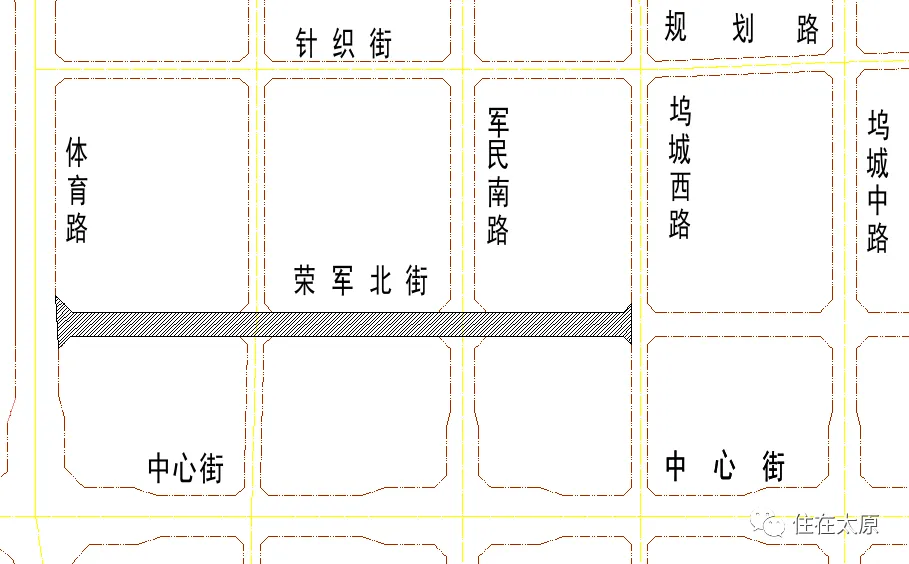 荣军北街道路工程西起体育路,东至坞城西路,道路全长约745米,规划红线宽30米,为城市次干路,总用地面积约2.2公顷。