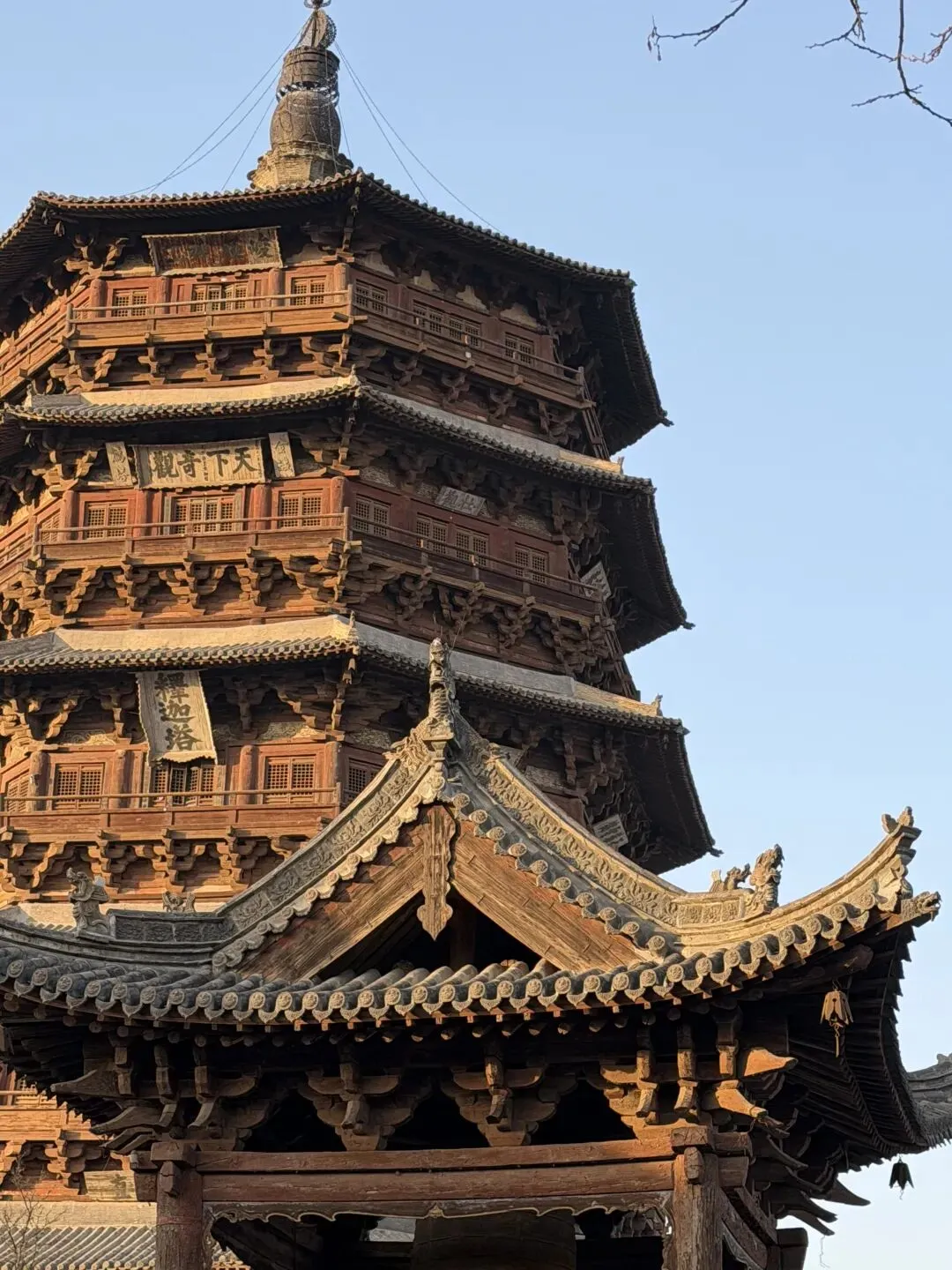 按照由远及近的游玩顺序,我们决定先去山西应县,因为朋友们想去应县看应县木塔,这座全榫卯无钉建造54种斗拱构成的 “空中楼阁”成功吸引了我们的注意。如果要去那里,我们就要先从大同站去到大同南站然后再从大同南站坐20分钟动车到山西应县,为了赶那一班恰到好处的动车,我们几乎是跑着出的站。戏剧性的是,崴脚的我还忘记带身份证了,所以我检票进站出站都需要人工输入,这更为我们在接下来的赶车过程中增添了一点难度。