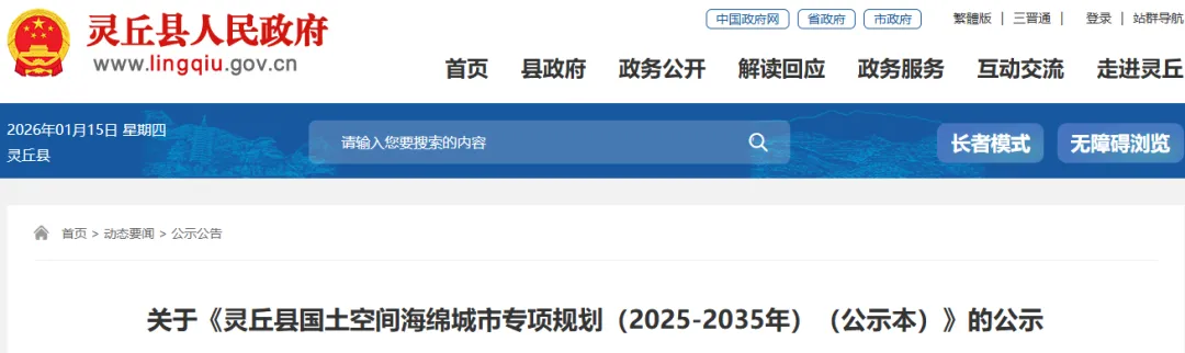为贯彻落实国家海绵城市建设战略部署,提升城市防洪排涝能力、改善水生态环境、推进绿色低碳发展,保障国土空间开发利用与生态保护协同推进,依据《中华人民共和国城乡规划法》《中华人民共和国土地管理法》《海绵城市专项规划编制暂行规定》等法律法规及山西省、大同市相关政策要求,灵丘县住房和城乡建设管理局组织编制了《灵丘县国土空间海绵城市专项规划(2025-2035年)》(以下简称《规划》)。