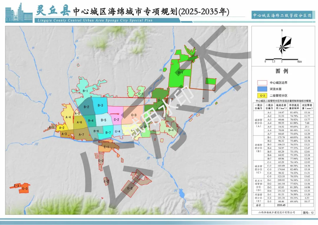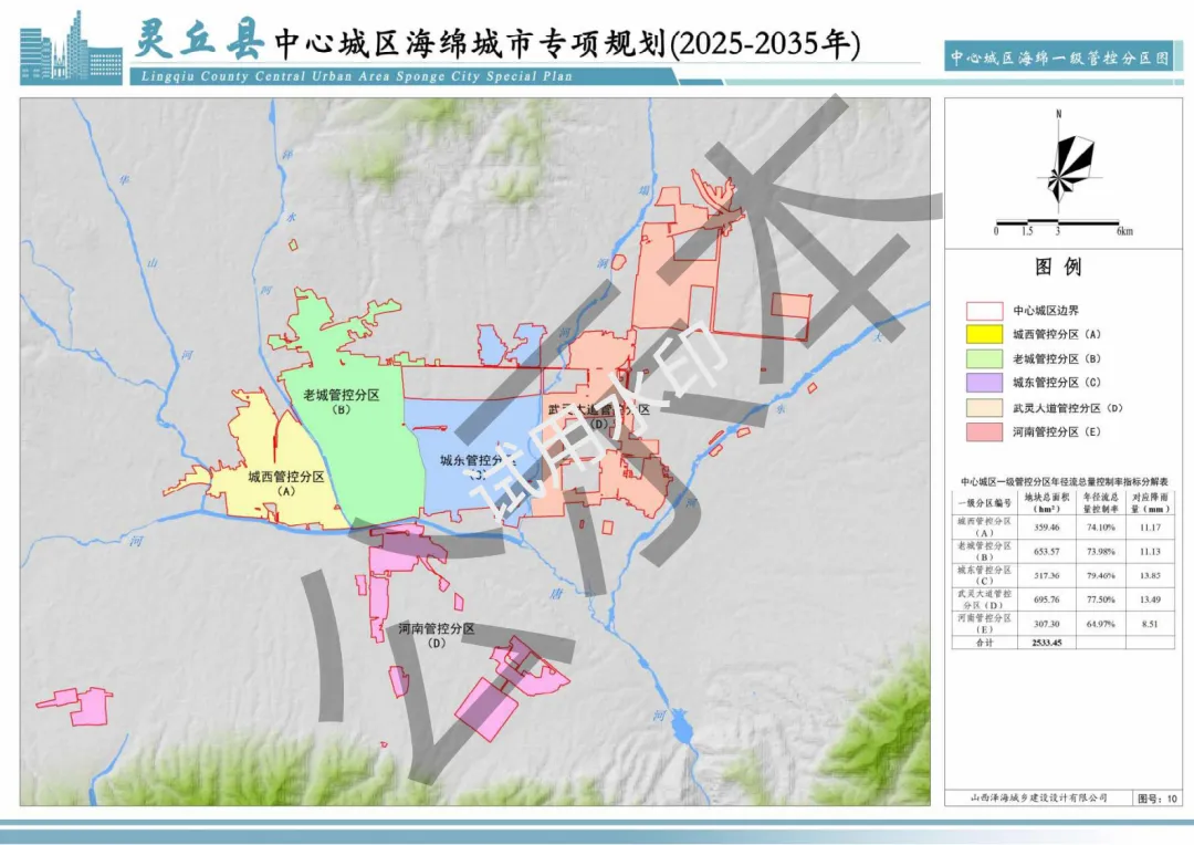 《规划》规划范围与灵丘县国土空间总体规划一致,规划期限为2025-2035年,核心围绕水安全、水生态、水环境、水资源四大目标,构建“一带两屏,一水多脉,廊点棋布”的生态空间安全格局,明确雨水年径流总量控制率等关键指标,划定海绵城市建设分区并提出管控要求,同步衔接国土空间规划“一张图”实施监督信息系统技术标准。