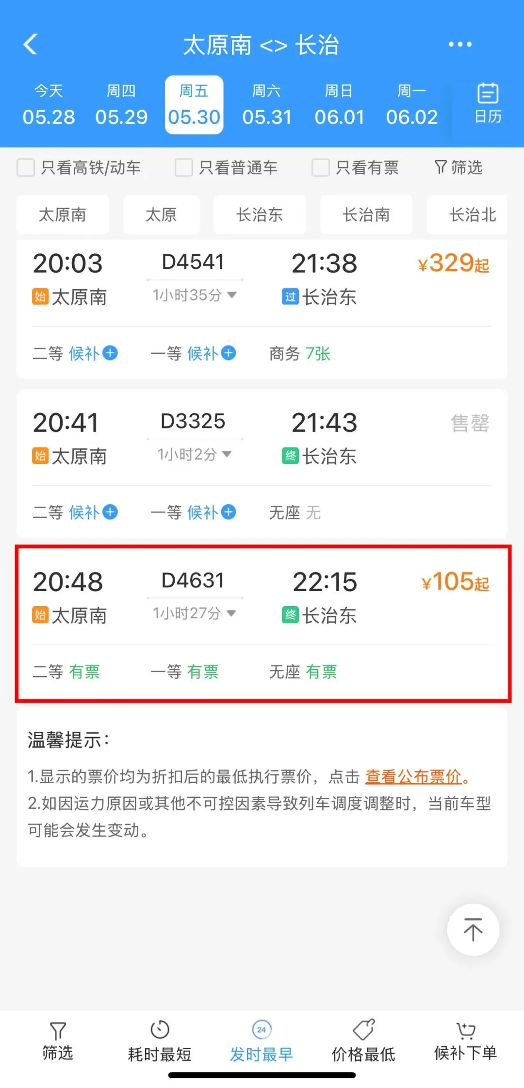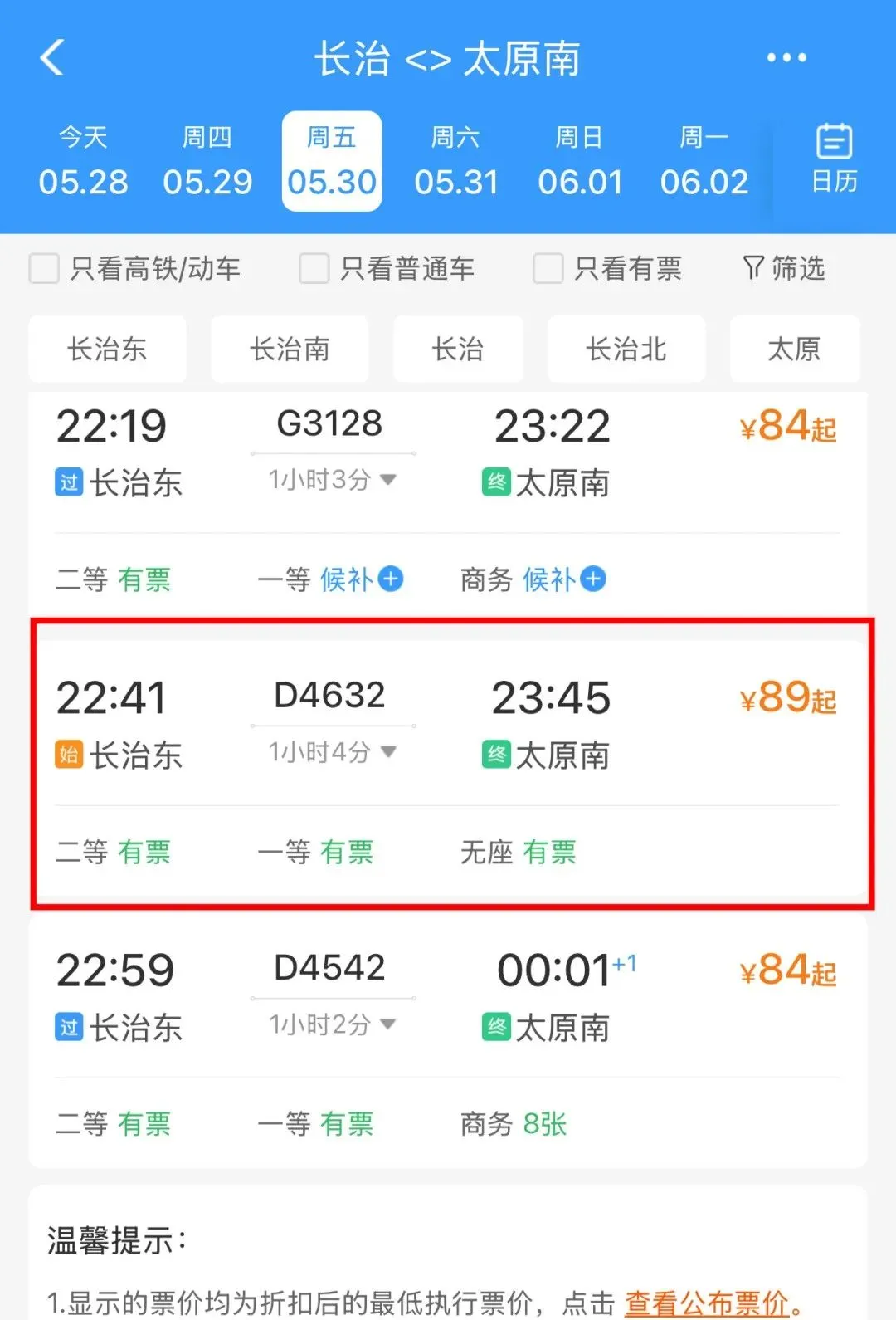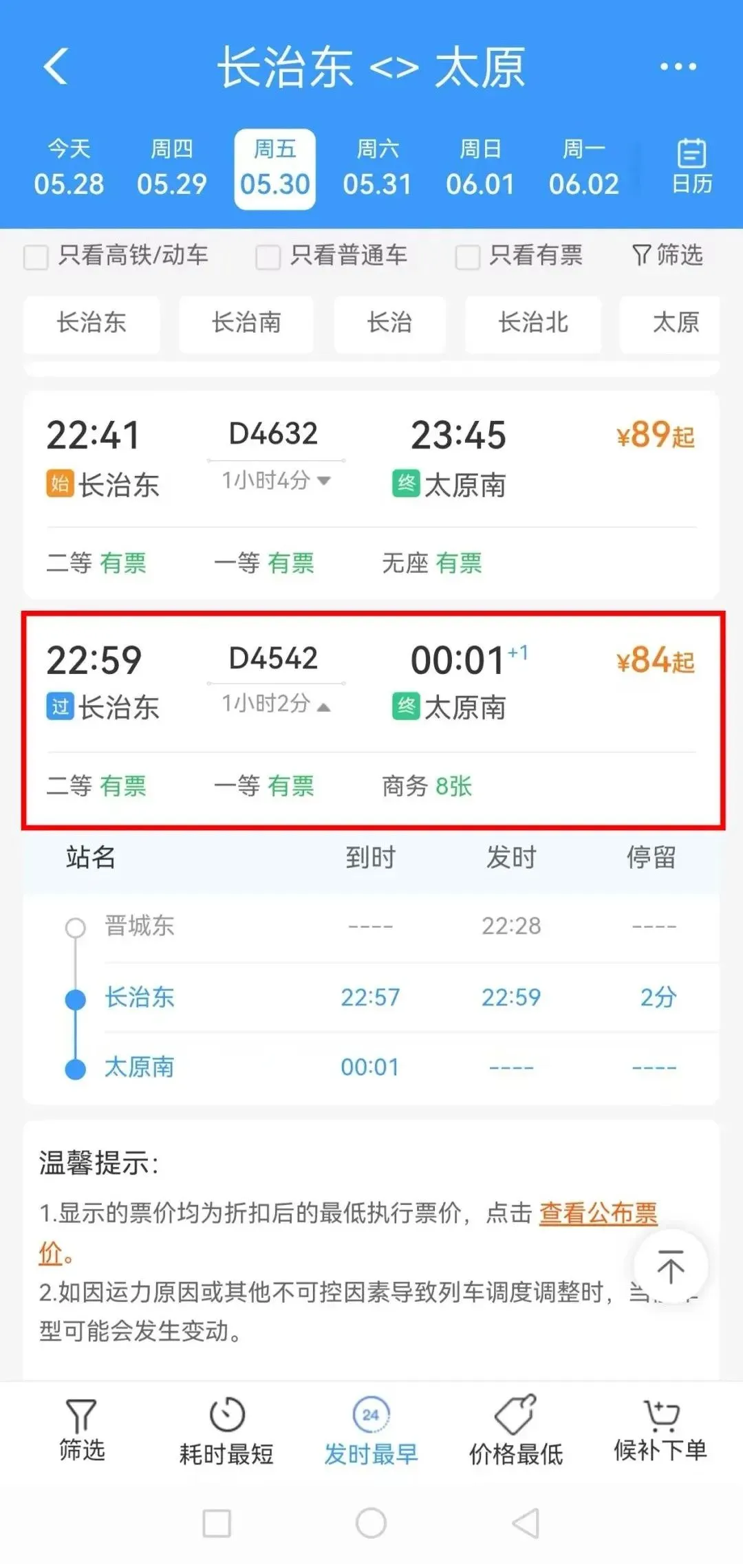长治东发车时间:22:59