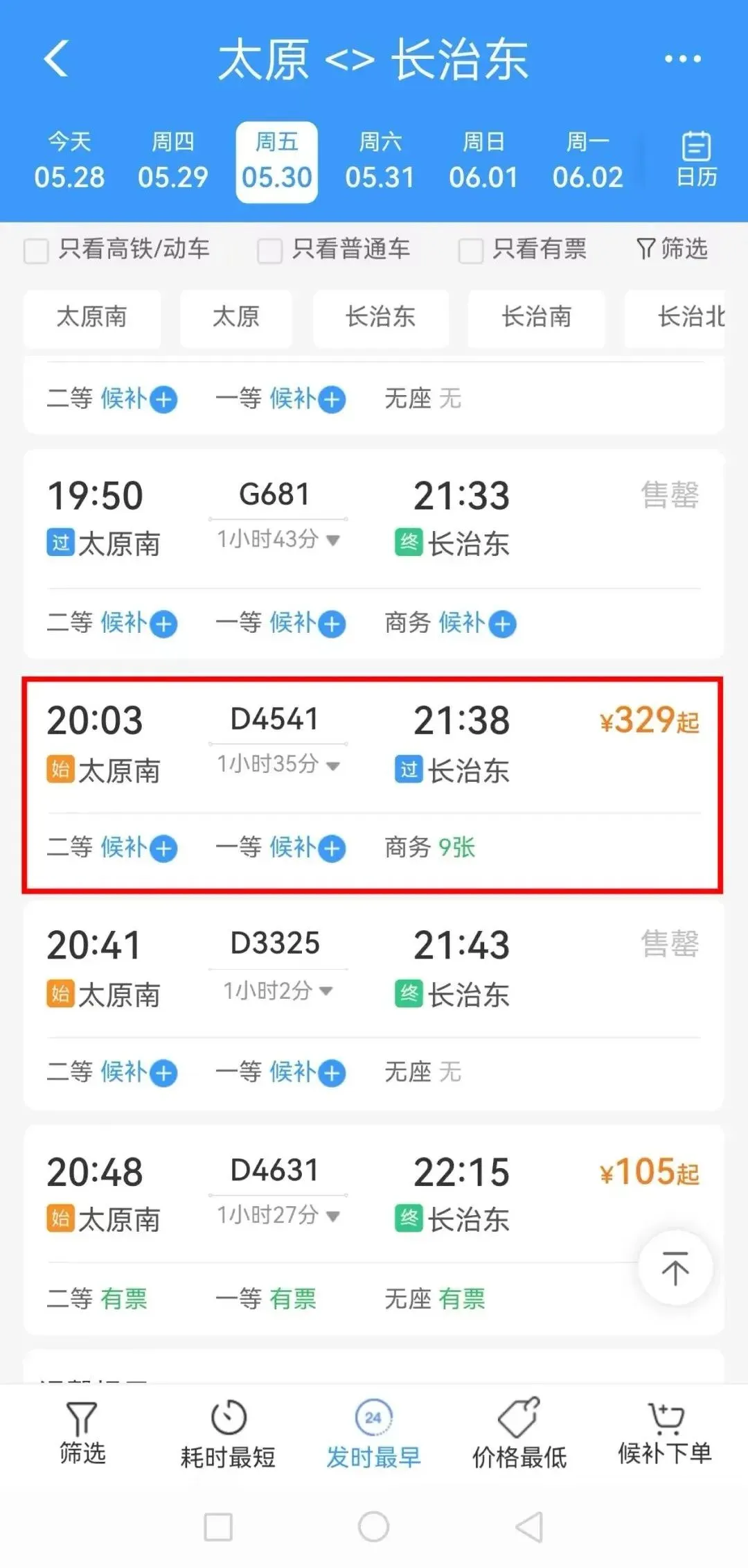 太原南发车时间:20:03