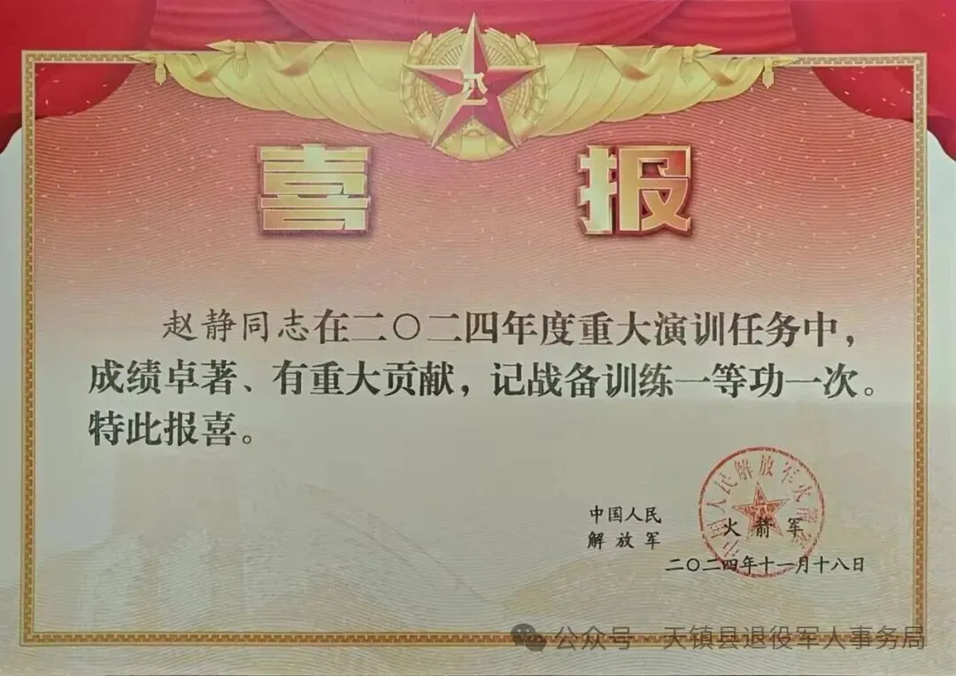 赵静,2002年12月入伍,现服役于解放军某部。入伍以来,他始终紧盯使命任务,积极投身练兵备战,出色完成多项演训任务,被所在单位誉为基层“兵专家”。在2024年度工作中有重大贡献,荣立一等功一次。