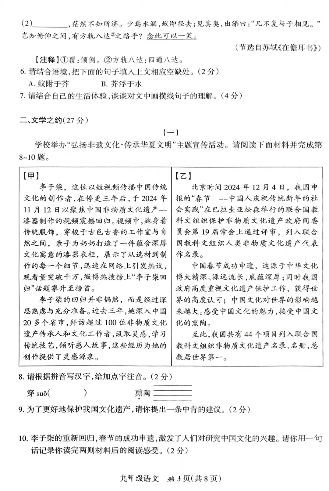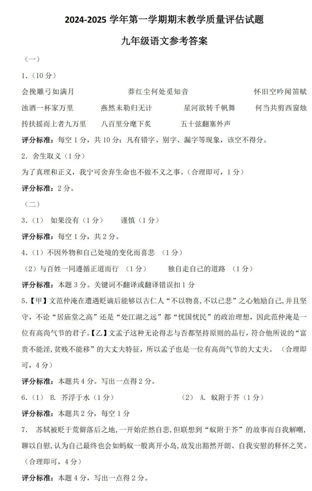 >【第1822期C】长治市2024-2025学年第一学期期末教学质量评估试卷-九年级语文