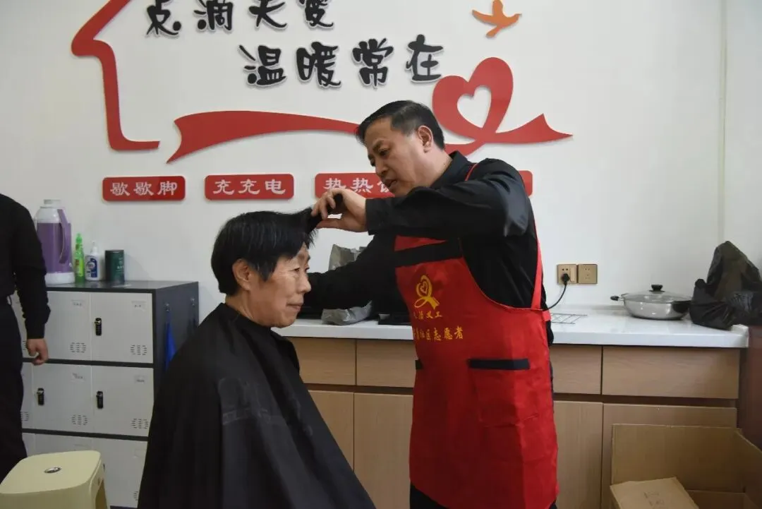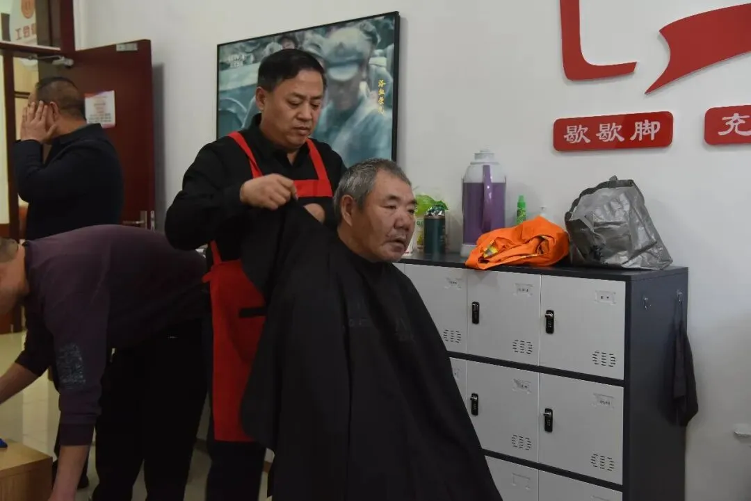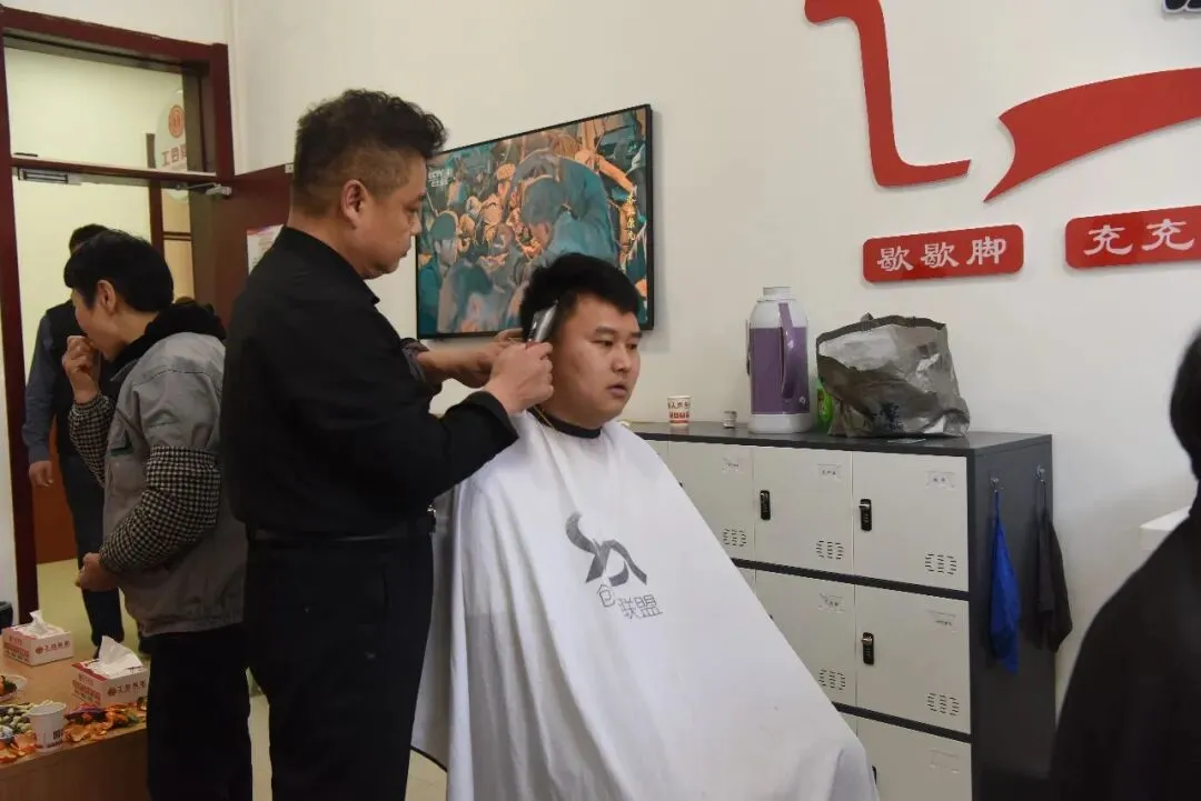 除了实用的物资慰问,驿站内增设的免费理发专区成为活动的一大亮点。医院工会邀请经验丰富的理发师志愿者坐镇,一把剪刀、一把梳子、一块围布,简单的装备、熟练的技艺承载着满满的心意。等候理发的劳动者们围坐在一起,喝着驿站提供的热水,与我院工会工作人员亲切交谈,分享工作中的点滴,现场氛围轻松而温馨。