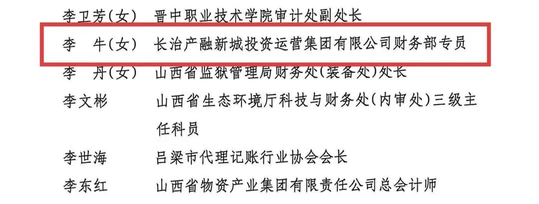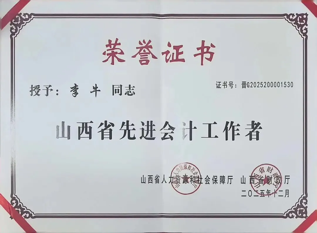 经过各级单位自下而上逐级推荐、严格审核,长治经开区产融集团财务部专员李牛同志,凭借出色的工作表现与专业素养,成功获评“山西省先进会计工作者”荣誉称号。