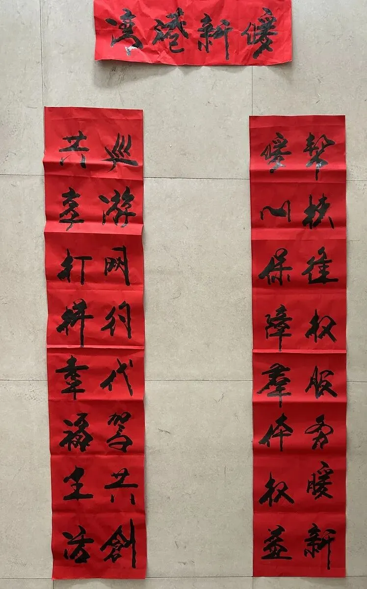 书法家还为太原市巡游网约车行业工会联合会职工服务中心赠写了一副春联: