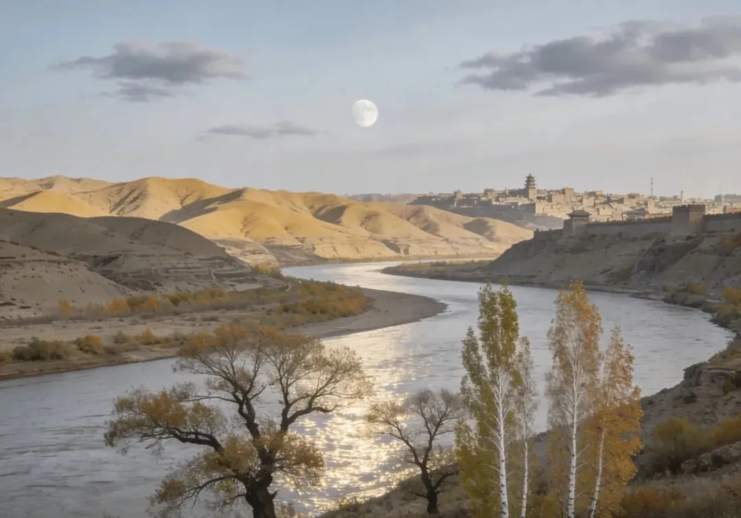 秋霜的凛冽之气早早漫出边塞,云层携着清寒,飘过黄河,浸染出满目的秋意。
