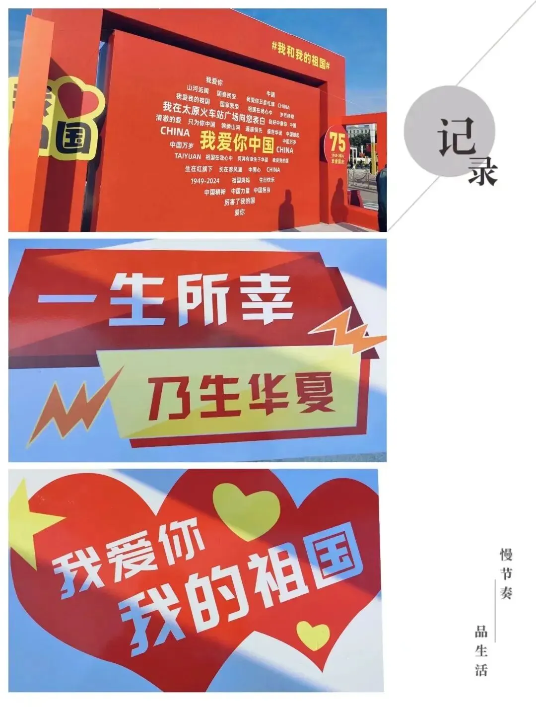 站前广场中央,那面“我爱你中国”的打卡墙,简直是为国庆量身定制的拍照胜地!一面是鲜艳的五星红旗,另一面写满了对祖国的深情告白,“我爱我的祖国”“祖国在我心中” 这些话语,让人看了心里暖乎乎的。地上还贴心地标注了“最佳拍照位置”,旁边的小桌子上摆满了各种形状的小标语牌,让人忍不住想要拿起一个,“咔嚓”一声,留下这难忘的瞬间。
