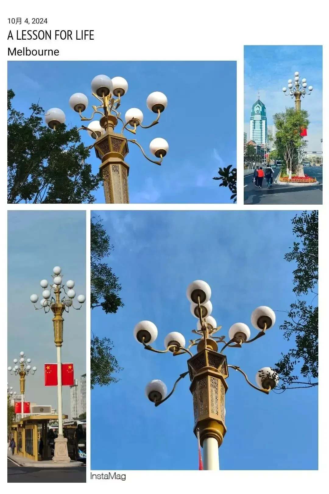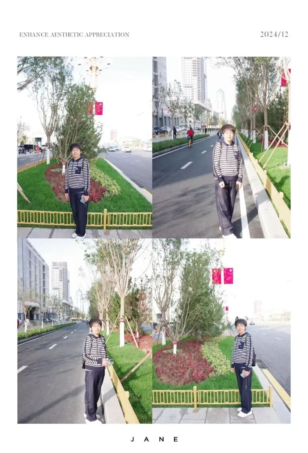 那清一色的香槟金栏杆在阳光下闪耀,格外养眼。七十米宽的大街,在1955年的时候可不多见,就算放到现在也一点都不窄,真佩服当年设计者的远见卓识。路上车不多,我还兴奋地跑到路中间的栏杆旁各种摆拍,留下好多美美的照片。