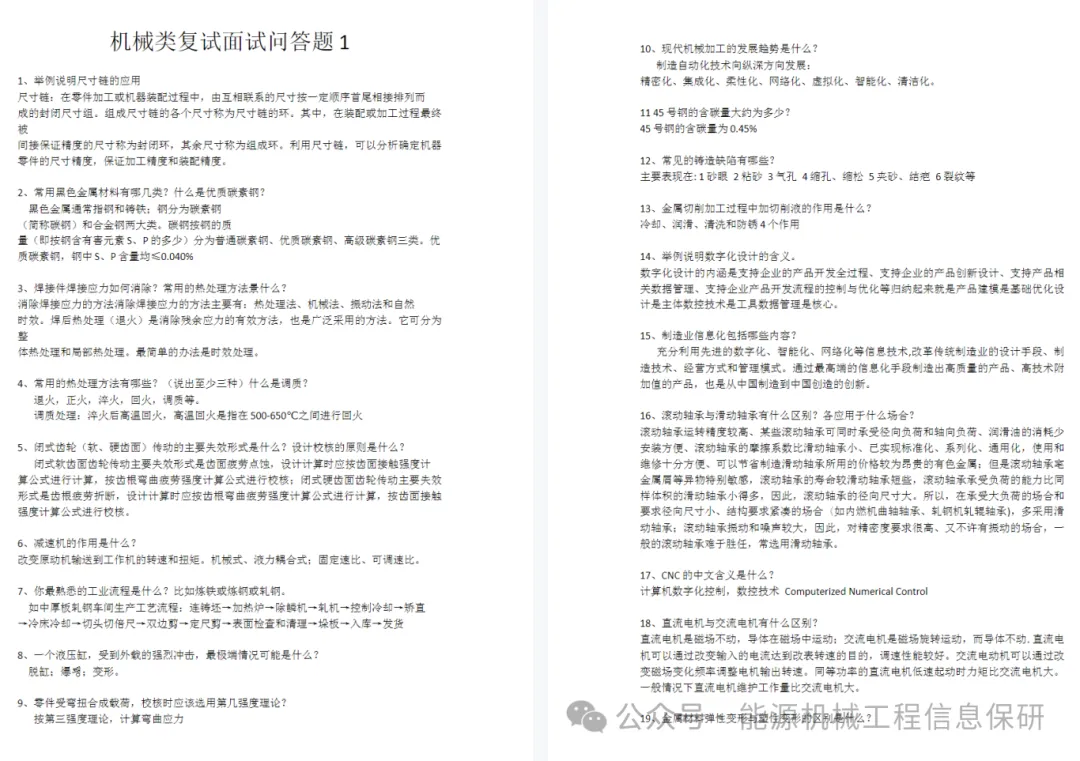 从力学学科推免去向来看,毕业生多瞄准航空航天领域顶尖院校,外校深造路径清晰且含金量十足,核心去向涵盖北京航空航天大学、西北工业大学、南京航空航天大学、国防科技大学等行业标杆院校。具体数据更能印证其高升学质量:推免至985高校的学生达16人(其中含华五院校1人),985院校录取率高达2/3;推免至211院校5人(含本校2人),另有3人于中国科学院深造。不过遗憾的是,本次推免名单中暂未出现清华大学、北京大学等顶尖学府的身影,未来在冲击国内顶尖高校方面,仍有进一步突破和提升的空间。我们特别整理了一系列精心挑选的保研资料,并决定以免费分享的形式提供给大家。这些资料不仅涵盖了机械专业的核心知识点,还包含了保研过程中经验分享及常见问题总结,需要资料的同学可扫码下方二维码(进入机械保研QQ群聊)或者添加微信vcxzzhushou1【以下仅为部分资料展示】