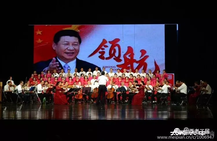 演出结束全体起立大合唱《没有共产党就没有新中国》