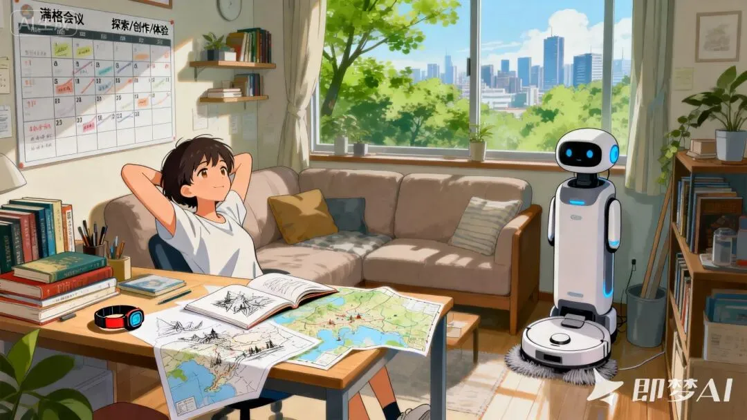 但这种理解正在越来越过时。因为它默认了一个前提:生存必须靠大量重复劳动去托底。可当人工智能与自动化接手了越来越多“枯燥但必要”的部分,人类第一次拥有了一个可能性——不必把多数清醒时刻交给不想做的事。
