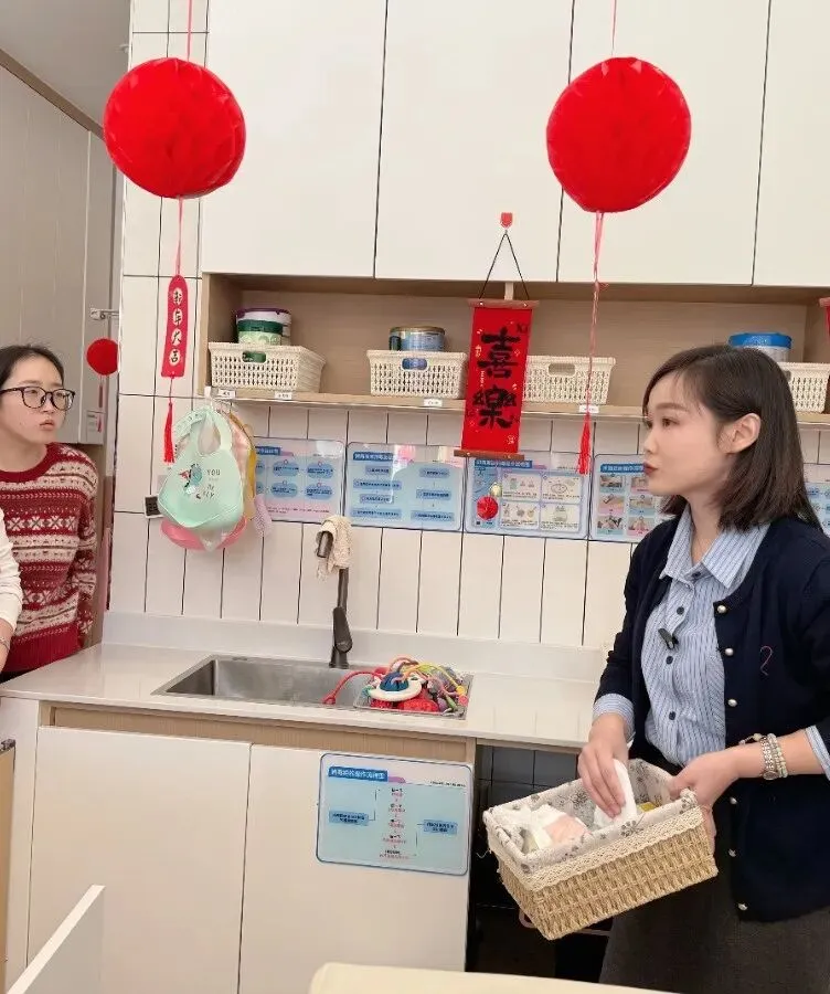 围绕乳儿班环境创设展开专项教学,从“三台两柜”规范布局,到自主探索区、睡眠区等五大功能区域的科学规划,进行理论结合实地的全方位拆解,确保老师们返园后即可学以致用、落地实操。