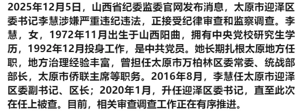 >太原一女领导被纪委带走调查!