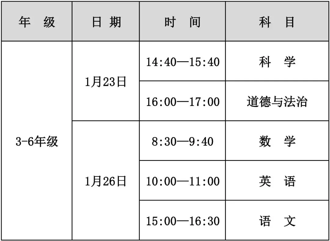 (二)3-6年级由区现代教育研究发展中心统一安排: