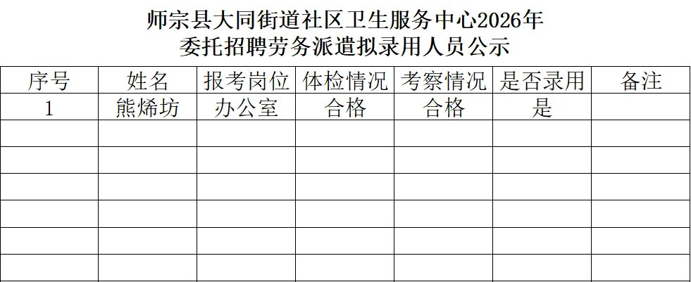 >师宗县大同街道社区卫生服务中心2026年委托公开招聘劳务派遣人员拟录用人员公示