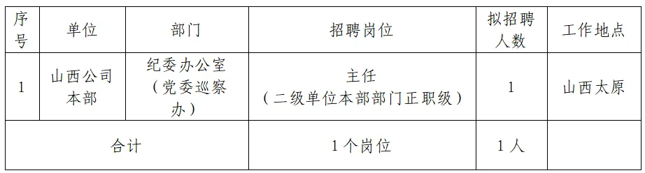 国家电投集团山西公司招聘1人