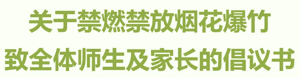 岁末迎新,年味渐浓,安全与文明是佳节最美的底色。为切实守护全校师生及家长的生命财产安全,营造整洁有序、文明和谐的节庆环境,根据《太原市人民政府关于太原市烟花爆竹燃放管控的通告》要求,太原市第二实验中学校特向全体师生及广大家长发出如下倡议: