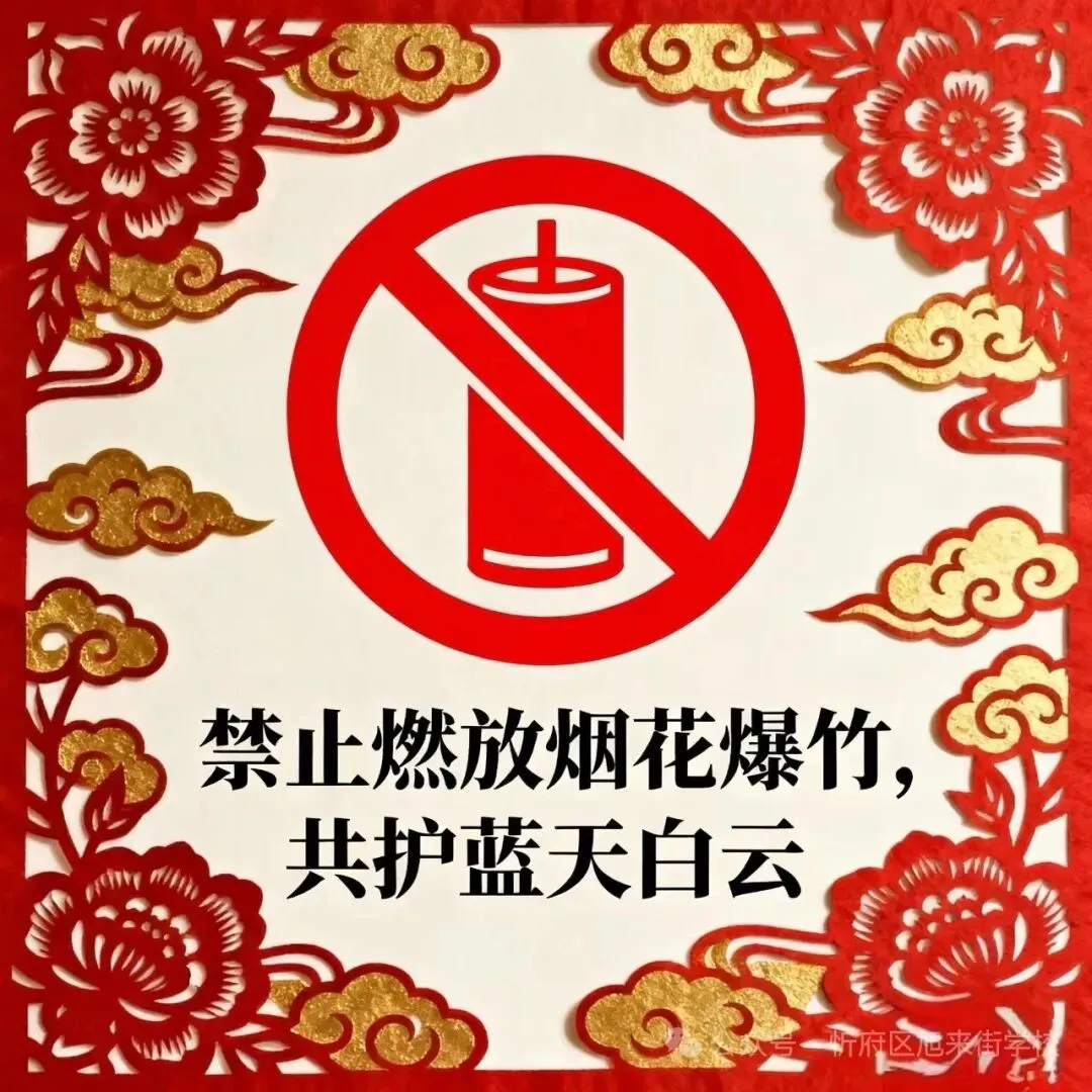 安全重于泰山,法治护航佳节!让我们家校同心,共守文明底线,从自身做起,从点滴做起,拒绝烟花爆竹,守护蓝天白云,共度一个安全、文明、祥和的新春佳节!