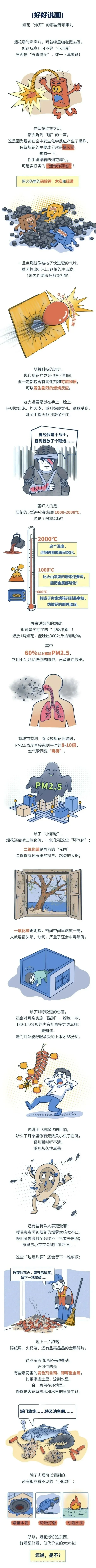 2. 环境污染严重:燃放时会产生大量二氧化硫、氮氧化物、金属颗粒物及烟尘,急剧推高PM2.5等污染物浓度,是导致春节期间空气重度污染、引发或加重雾霾天气的重要因素之一。
