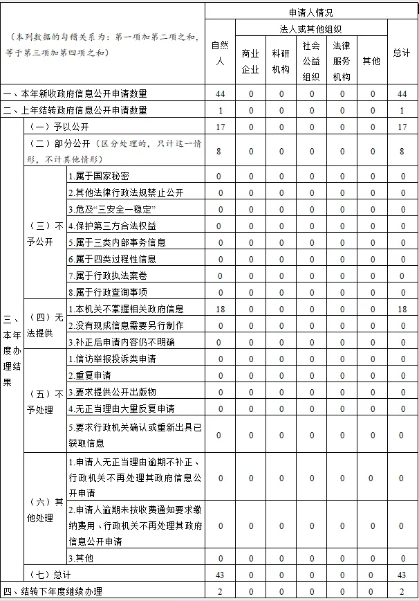 三、收到和处理政府信息公开申请情况