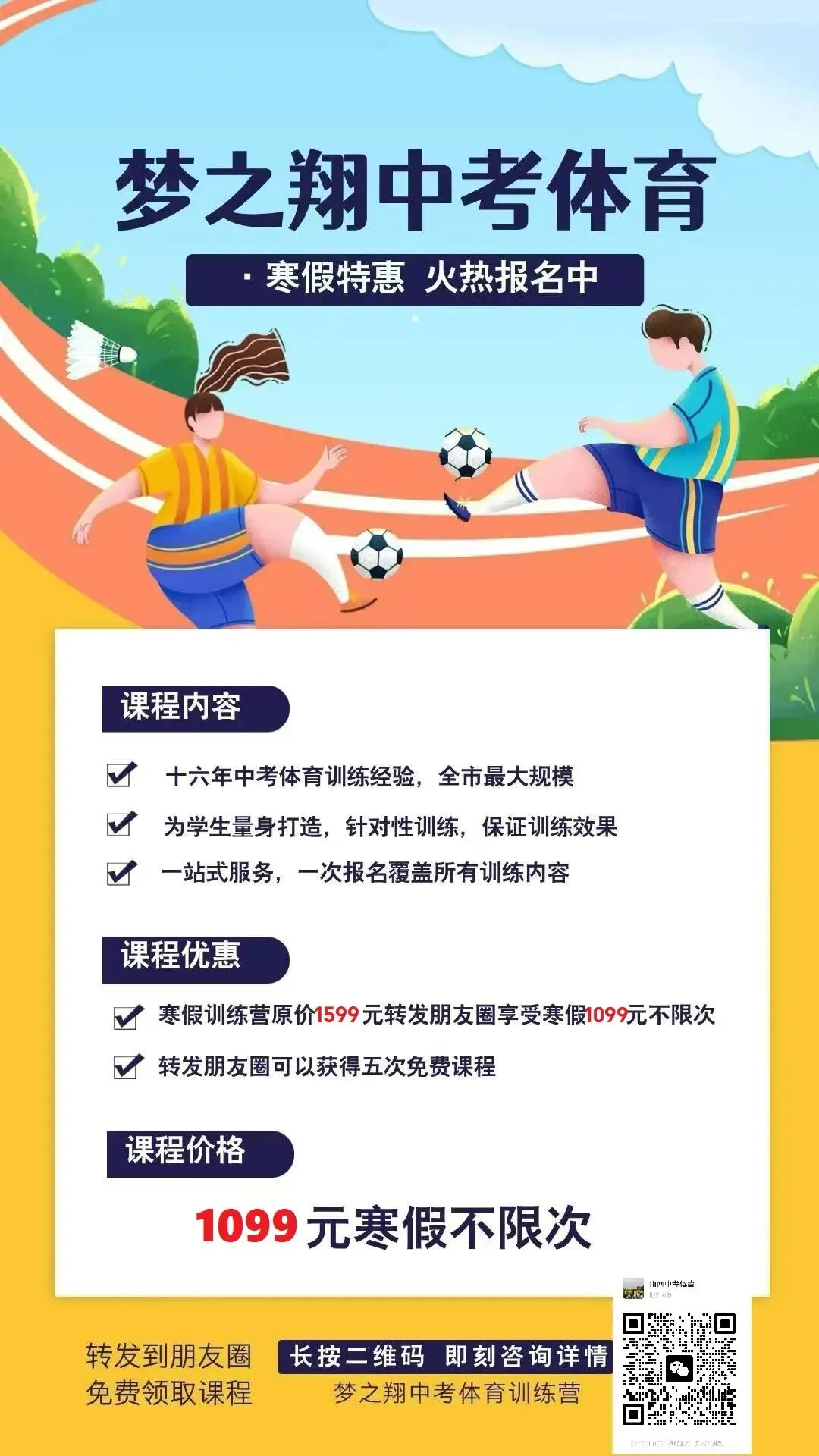 免费赠课方法:先加微信19311065015或长按二维码加微信,转发朋友圈7天和家长群3个凭截图可免费获得5次训练课(包含全部中考体育考试内容)。