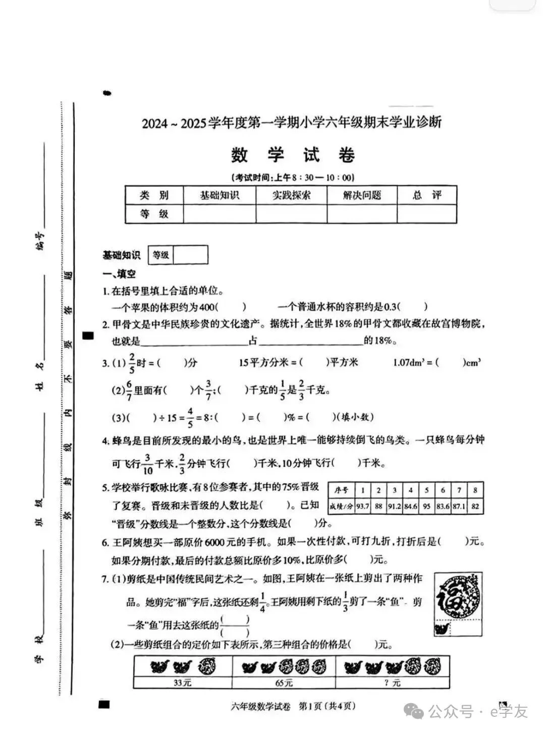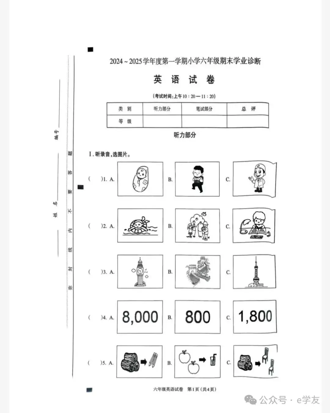 【期末考试】山西太原去年期末测试卷,3-6年级有需要的抓紧打印练习