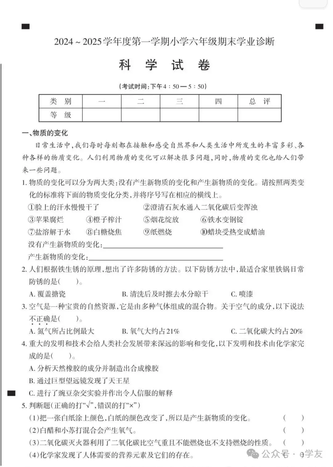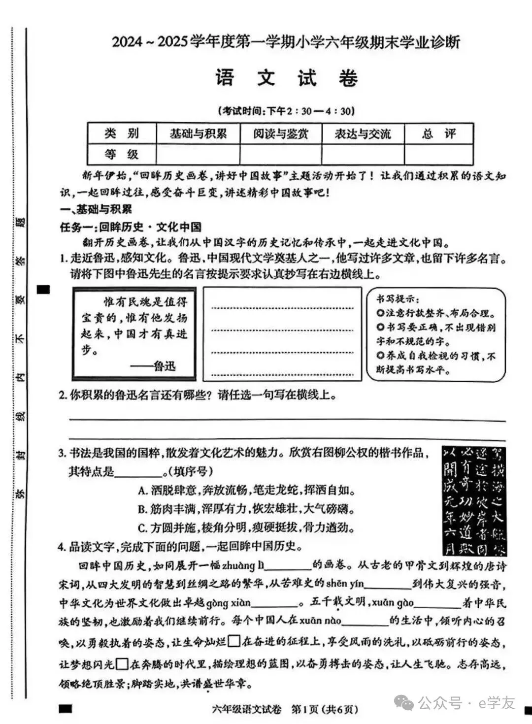 >【期末考试】山西太原去年期末测试卷,3-6年级有需要的抓紧打印练习