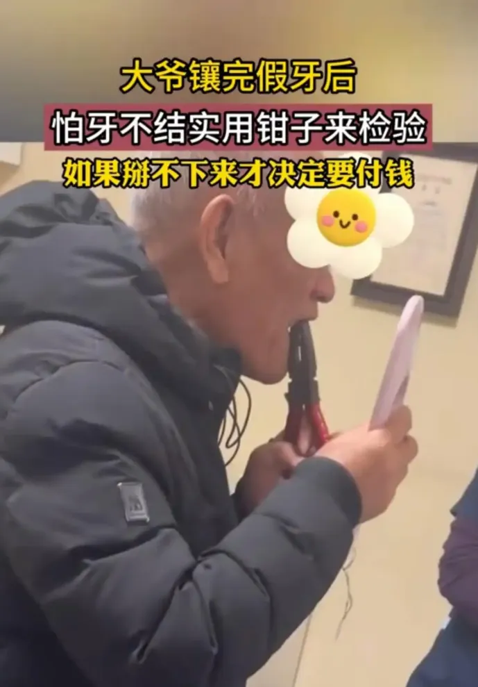只见大爷一坐下,压根没跟医生多废话,慢悠悠地从裤兜里摸出一把锃亮的钳子,二话不说就对准自己刚修复好的那颗牙,夹着就开始使劲掰。那动作又快又狠,看得旁边的医护人员都懵了,赶紧上前劝阻,可大爷却一脸执拗,说自己就是要亲自检验下牙齿的牢固度,不掰断就证明手艺过关,才愿意结清费用。