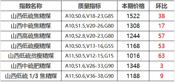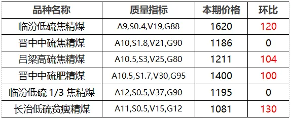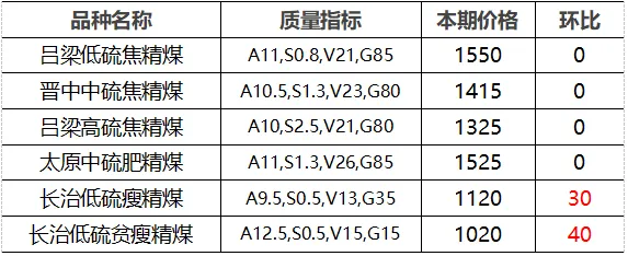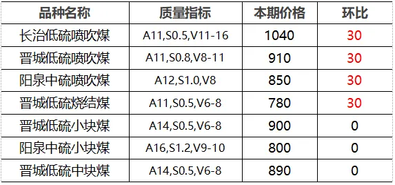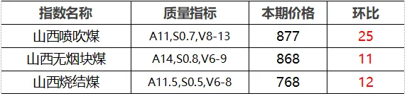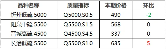 4.市场价格主要为中国太原煤炭交易网自动成交交易价格,个别为企业报价(坑口含税)。
