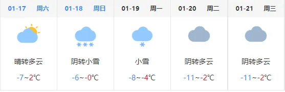 01.17(周六):晴转多云,气温 - 7~2℃,