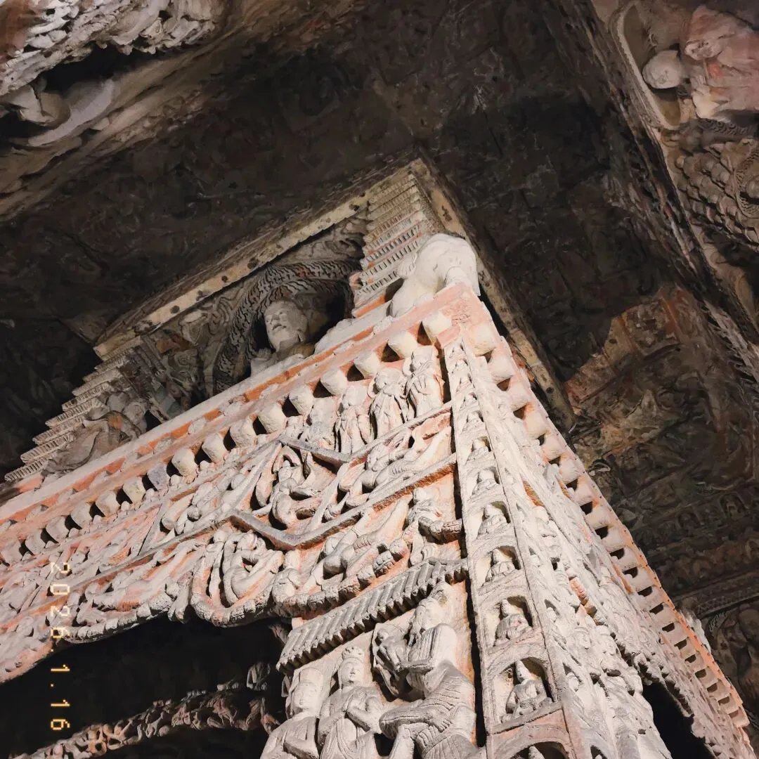 之前来时,曾经非常喜欢这些华彩。这次听导游说,其实我们看到的很多仍然有色彩遗存的造型,大多为清代修复或补全的。