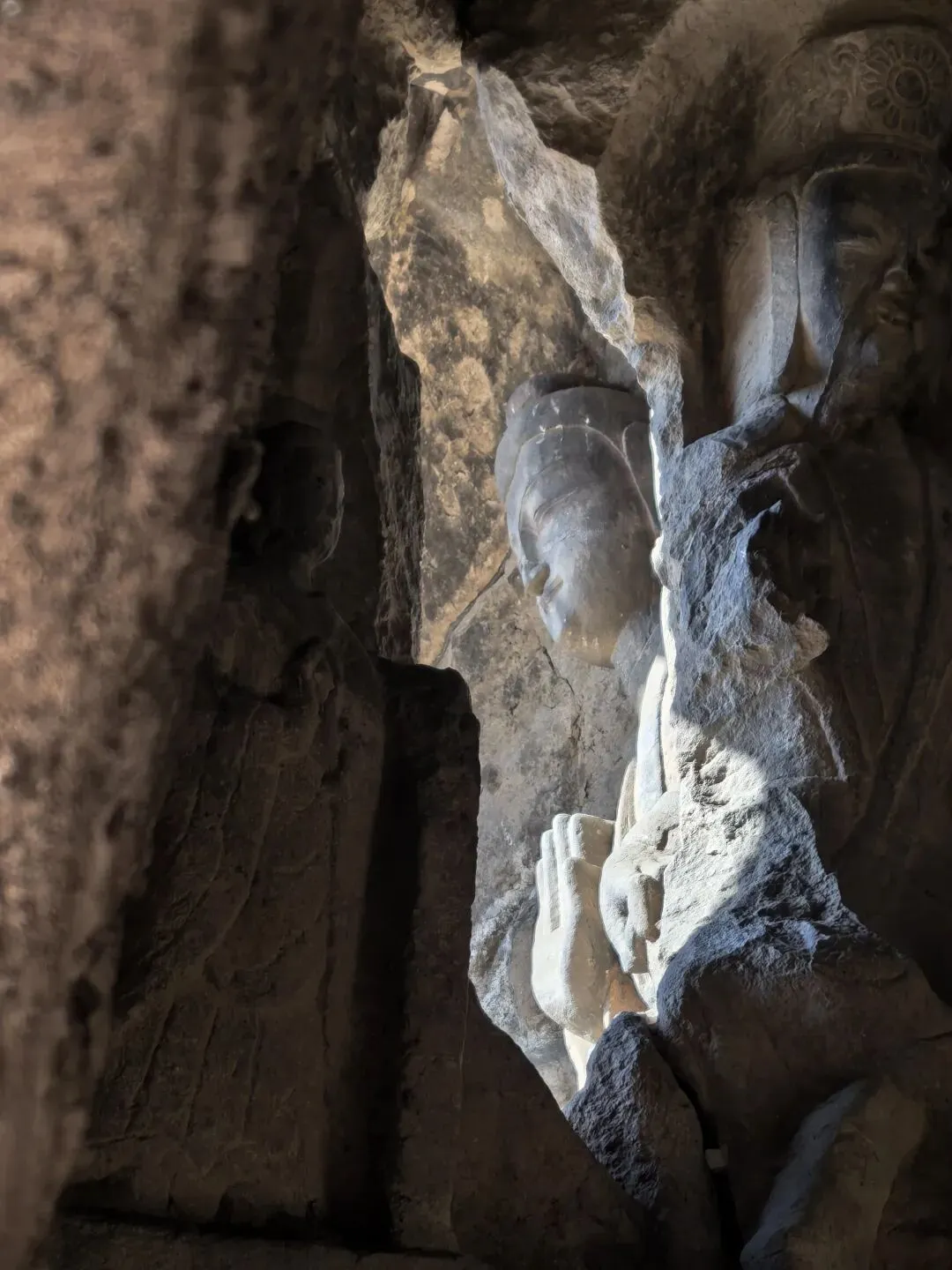 中午的时候,人已经越来越少了,我得以独享石窟,站在角落思接千载,很快乐。