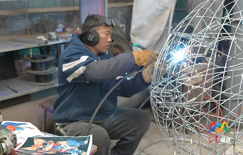 工人们各司其职,有的焊接骨架,有的裱糊灯面,一道道工序有条不紊,一盏盏造型各异的花灯在他们灵巧的手中渐渐成型。
