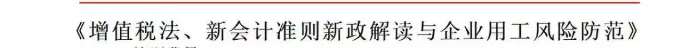增值税法、新会计准则新政解读与企业用工风险防范