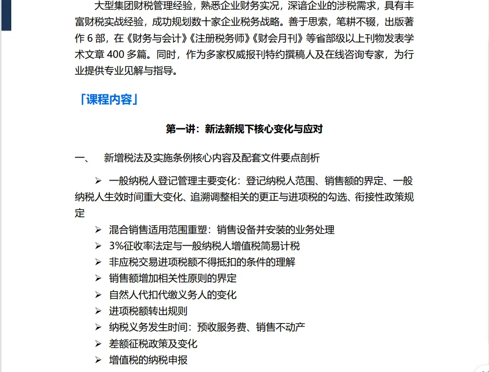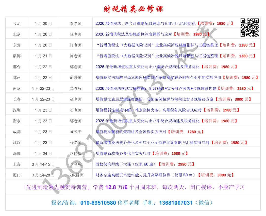 【长春.1月22-23日】增值税法底层逻辑深度剖析、实施条例精解与税税比对合规解决方案