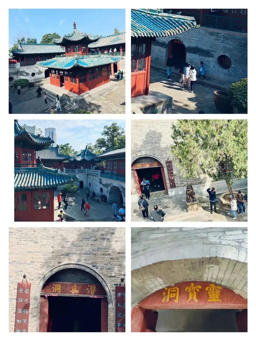 绕着院落走上一圈,八面均设有砖券窑洞,俗称 “九窑十八洞”—— 北面为横窑,其余为纵窑,合为 “九窑”,十六个窗洞加两个门洞统称 “十八洞”。每一个洞窟里都供奉着不同的神仙,仿佛一脚迈进了神秘莫测的道家仙境。