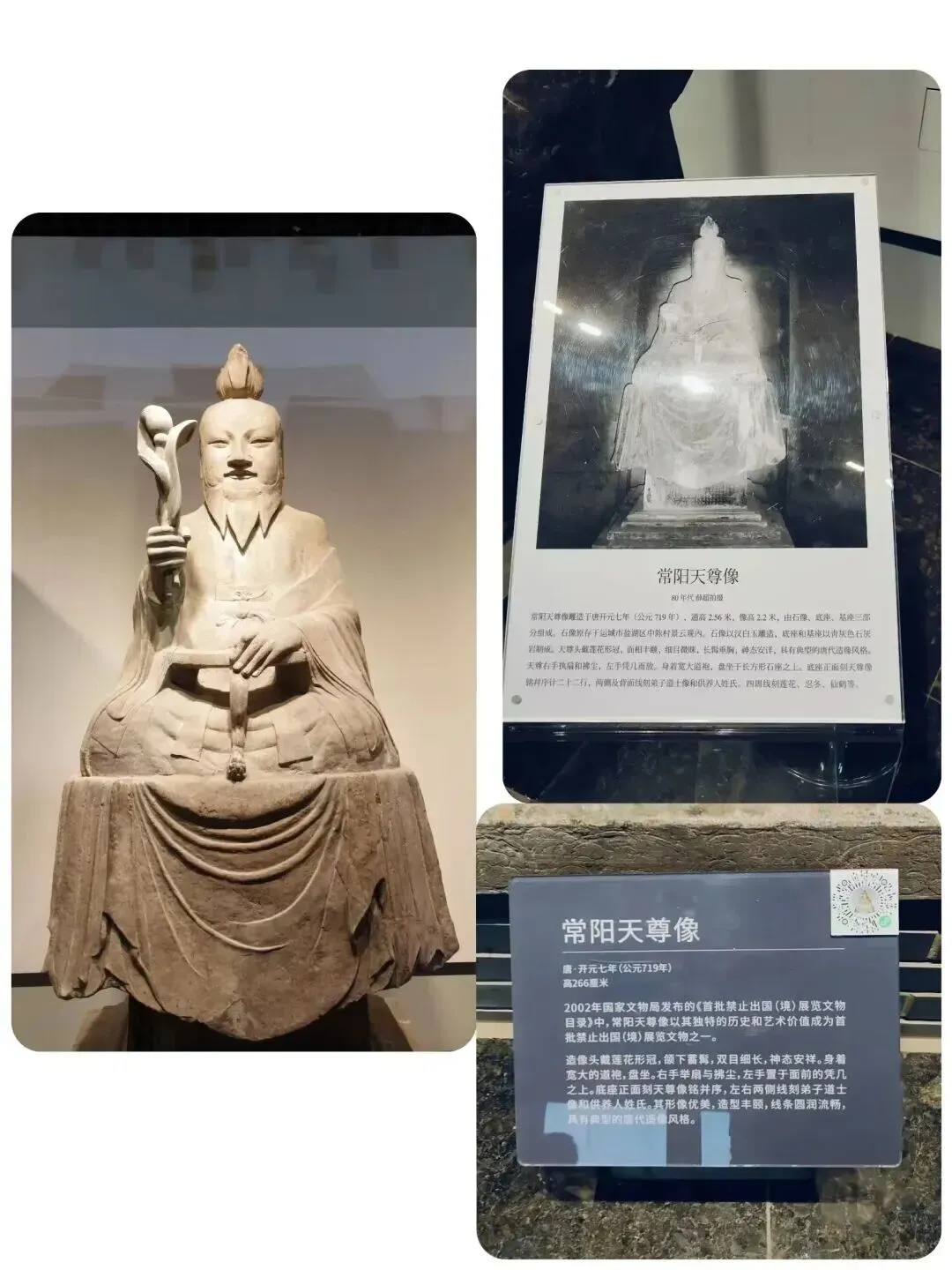 潜真洞里,藏着纯阳宫的又一绝——“唐代常阳天尊像”,这可是首批被明令禁止出国(境)展览的文物,是真正的国宝!石像用汉白玉雕琢而成,“天尊”身披道袍,头戴莲花冠,双目狭长,微微闭着,神态安详平和,面容丰腴圆润,长髯柔顺地垂落在胸前,周身透着一股宁静祥和之气,那雍容华贵的范儿,活脱脱就是“大唐风范”。相传,“常阳天尊”就是“太上老君”。唐朝皇室姓李,所以尊老子李耳为先祖,然后从那时开始兴建道观,塑道教造像。这尊石像历经1300多年的风雨沧桑,除了底座稍有破损,其余部分完好无损。