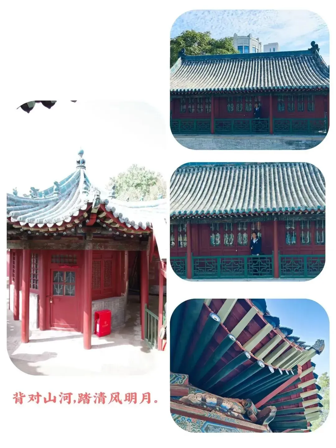楼阁之上,几间展屋大门紧闭,可这又何妨?红墙映着绿瓦,亭阁与殿楼相互映衬,美得就像一幅画,叫人挪不开步子,流连忘返。
