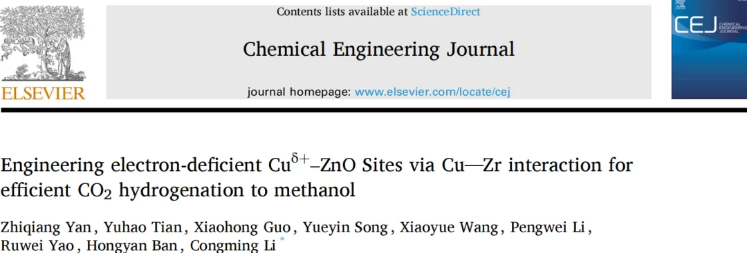 2. 发现反应条件下生成缺电子Cu(δ+) -ZnO(2>δ>1)位点,显著降低甲醇合成的表观活化能。