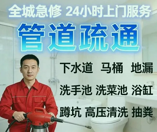 提供24小时同城上门疏通服务,包括下水道疏通、管道清洗、马桶疏通、地漏疏通、浴缸疏通、菜池疏通等。师傅经验丰富、上门迅速、价格透明,服务范围涵盖:疏通主管道、高压清洗管道、抽化粪池、维修水管、安装下水管道、清理隔油池等各类管道维修与清洁服务。