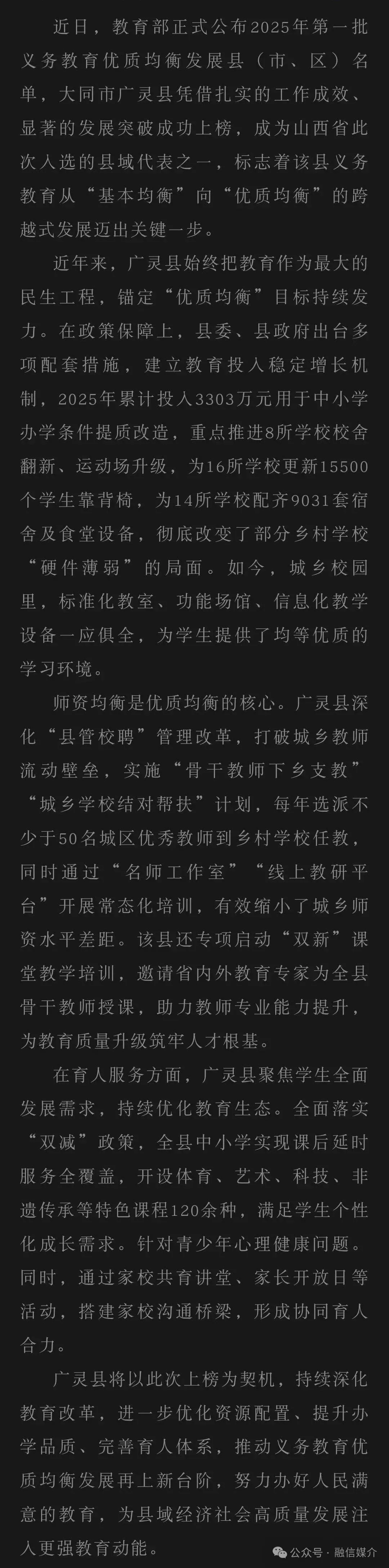 大同:广灵县成功入选全国义务教育优质均衡发展县