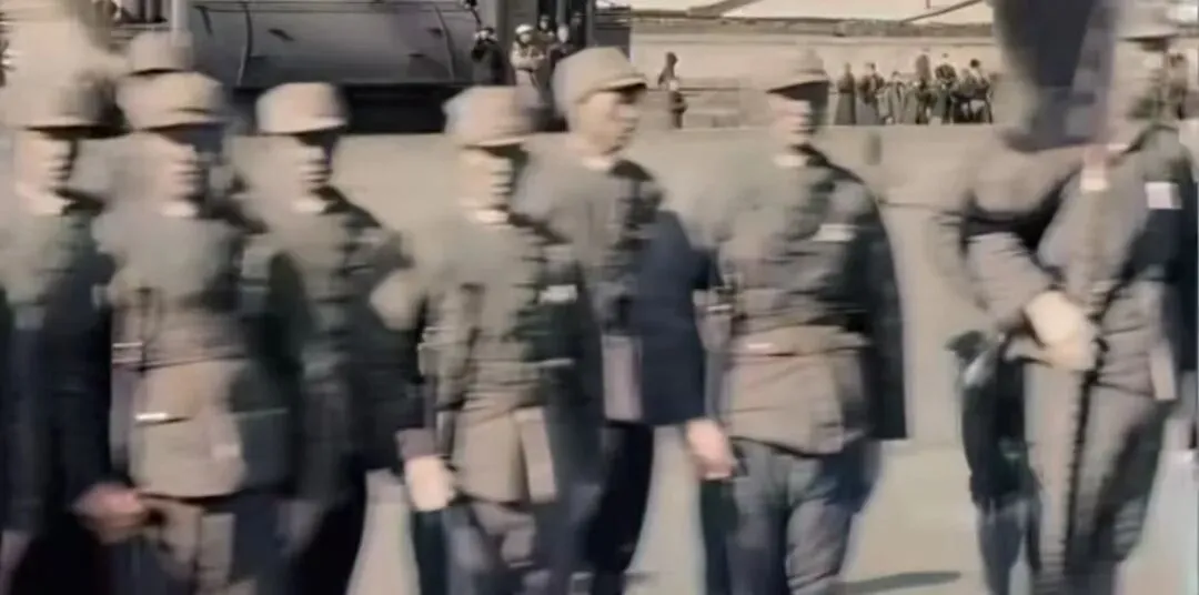 “探影局档案”蒋来大同录像截图(大同站欢迎的晋绥军士兵)