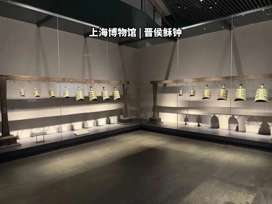 这套编钟的形制已显示出创新与突破,其规模和精美程度,隐隐有超越本分之嫌,如果讲解员有介绍它的来历就会知道,这套编钟一共十六件,两件在山西省博物院,另外两件在上海博物馆。