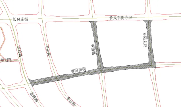 枣园路:北起长风东街,南至枣园南街,长约 435米,规划红线宽30米,为城市次干路,用地面积约1.4公顷。